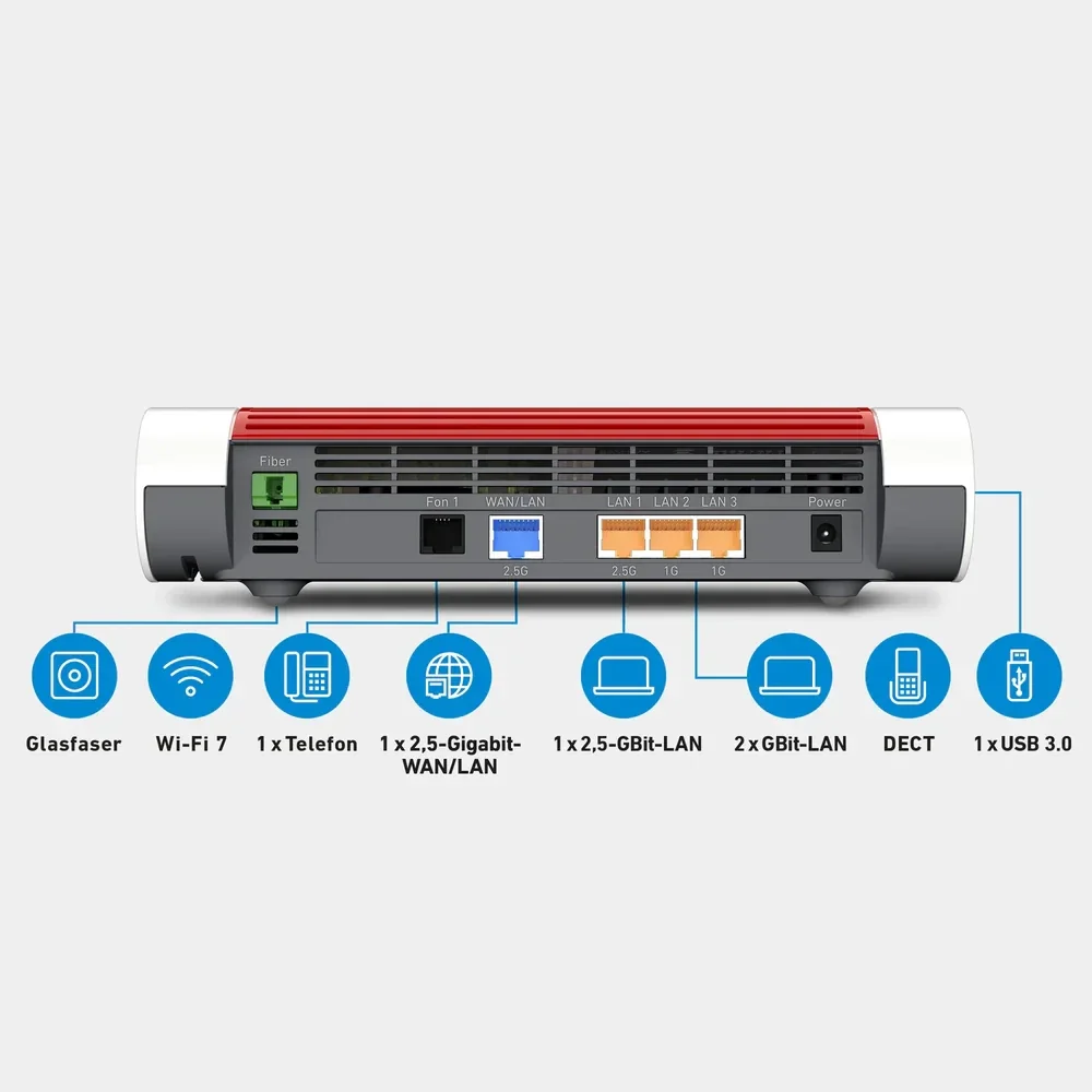 - Wi-Fi 7 bis 6,4 GBit/s mit WLAN Mesh